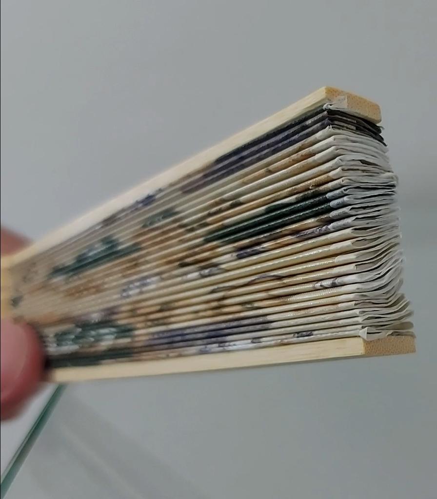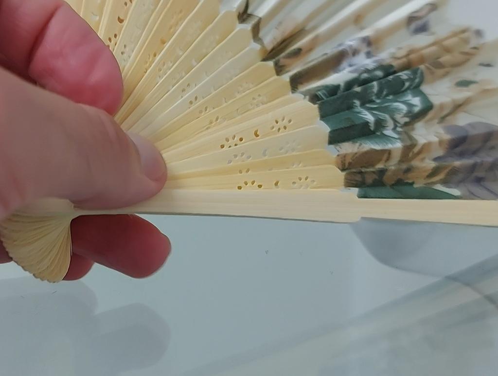Der Fächer ist sehr schön 🥰 Mir ist nicht gleich aufgefallen, dass es auf der Rückseite leicht angenagt war. Ein wenig verärgert, aber aus der Ferne ist es praktisch nicht wahrnehmbar, der Mechanismus ist nicht betroffen