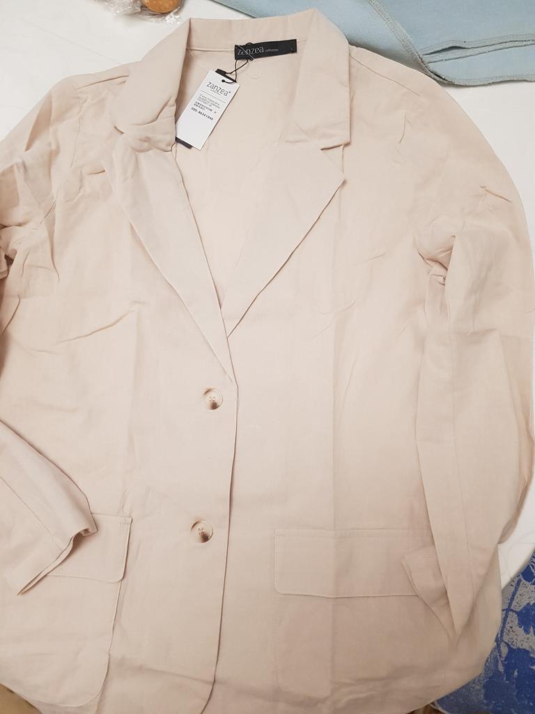 Die Jacke ist genau die gleiche wie auf dem Foto. Leicht, ungefüttert. Genau das, was Sie für den Sommer brauchen. Ich empfehle.