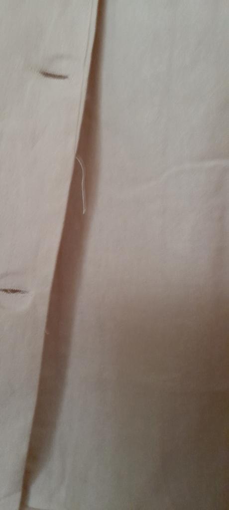 Dünn, durchscheinend. Ich habe die Größe auf 105/87/107 geschätzt, auch der Ärmel ist so, wie er bei einer Körpergröße von 1,65 cm sein sollte. Der Stoff fühlt sich angenehm an und ist im Sommer angenehm zu tragen. Von oben scheint mir ein dritter Knopf erforderlich zu sein. Vielen Dank und ich empfehle!