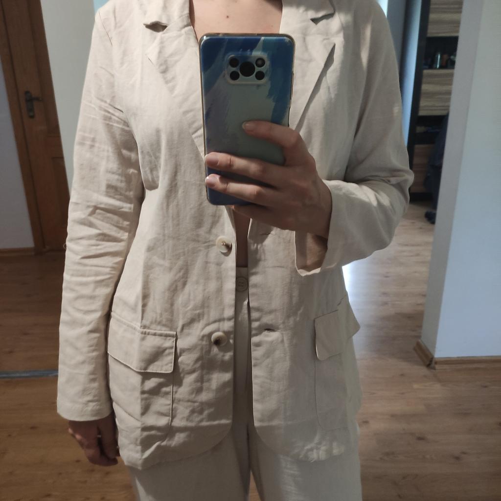 Der Blazer ist sommerlich, dünn, leicht, gut verarbeitet, sitzt gut... Die Farbe ist beige, sauber genäht. Blazer ohne Futter, Größe entspricht der Beschreibung auf dem Werbefoto. Stoff - Baumwolle. Zufrieden mit dem Kauf!