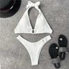 Halter Falten Bikini Frauen Bademode Weiblichen Badeanzug Zwei-stück Bikini set Mittlere Taille Brasilianische Badende Badeanzug