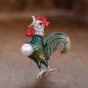 Blucome Lebhafte rote Broschen in Hahnenform Alooy Tierbrosche für Damen Anzugmantel Schal Hutnadeln Schmuck