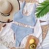Sexy gerippter Badeanzug mit hoher Taille, Bikini, Damen-Bademode, zweiteiliges Bikini-Set, Badeanzug in Orange