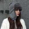 Lei Feng Mütze Damen Winter Wolltrend Plus Fleece Strickmütze Warme und süße und niedliche Ohrenschützer Kalte Wollmütze