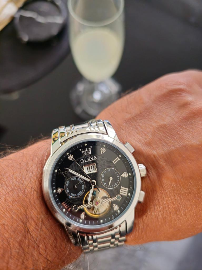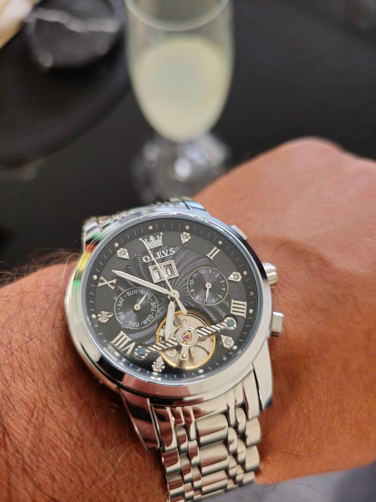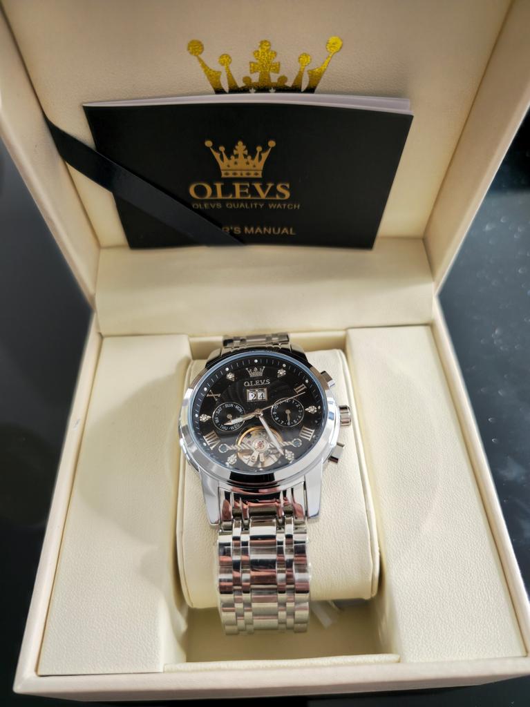 OLEVS 9910 mit Geschenkbox, automatisches mechanisches Messgerät, Business-Multifunktions-Herrenuhr, Herrenuhr