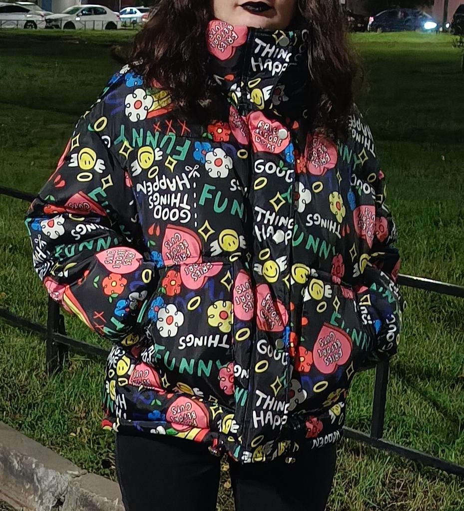 Die Jacke ist ausgezeichnet: meine Größe, toller Aufdruck, sehr warm, praktische Taschen. Die Kapuze daran ist groß und wenn man sie aufsetzt, weht einem der Wind überhaupt nicht ins Gesicht, was für mich ein großer Pluspunkt ist. Wärmt auch ohne Mütze. Die Hände frieren bei -5 Grad nicht in den Taschen, aber wenn die Temperatur niedriger ist, ist es besser, Handschuhe zu tragen.. Man kann einen Schal tragen, der Kragen der Jacke ist weit und bedeckt den Hals, aber wenn Ihr Hals unter der Jacke nicht durch andere Kleidung bedeckt ist, könnte es kühl sein.