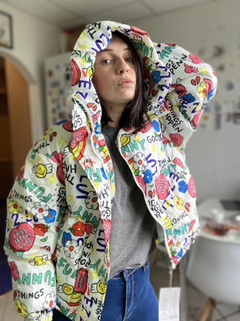 ❤️JACKE MIT FANTASIE❤️ Aber was für eine schöne Bettdecke, Sie werden sicherlich nicht unbemerkt bleiben. Die Bettdecke hält mich warm und vor allem fühle ich mich sehr modisch !!! 🌟GRÖSSE Ich habe Größe M gewählt (die kleinste) Meine Maße sind 70cm für die Taille und 90cm ungefähr für die Hüften. 🌟QUALITÄT Hervorragende Qualität der Nähte und Designs 🌟 FARBE Die Bettdecke ist in verschiedenen Farben erhältlich 🌟 Lieferung in 3 Wochen 👍👍👍👍SCHLUSSFOLGERUNGEN Die Bettdecke hat eine tolle Qualität und ich kann sie weiterempfehlen