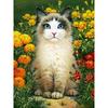 5D-Diamant-Malerei-Set zum Selbermachen, Katze in den Blumen, Diamant-Stickerei, Strass-Dekorationen für Zuhause