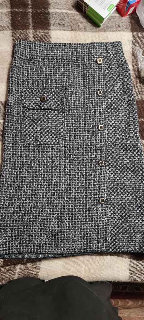 Ein wunderschöner, warmer Rock, mit einem kleinen Fehler, etwas Faden mit Knoten, aber er wird enger, ich werde ihn von innen nach außen anprobieren. Der Größe nach ist meine Größe 44, Hüfte 95, Taille 74, man könnte einen nehmen Größe kleiner.