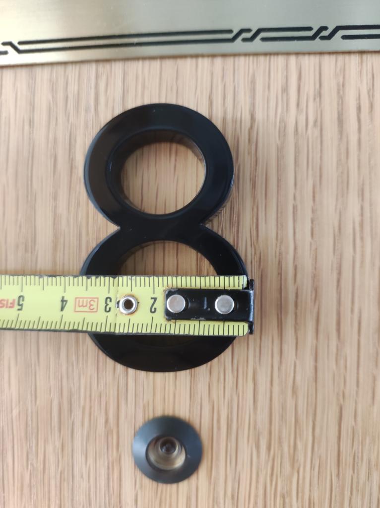 Hochwertiges Chrom, Nummer aus Kunststoff, ich hoffe, dass sie gut haftet... es gibt einen Klettverschluss zum Aufkleben