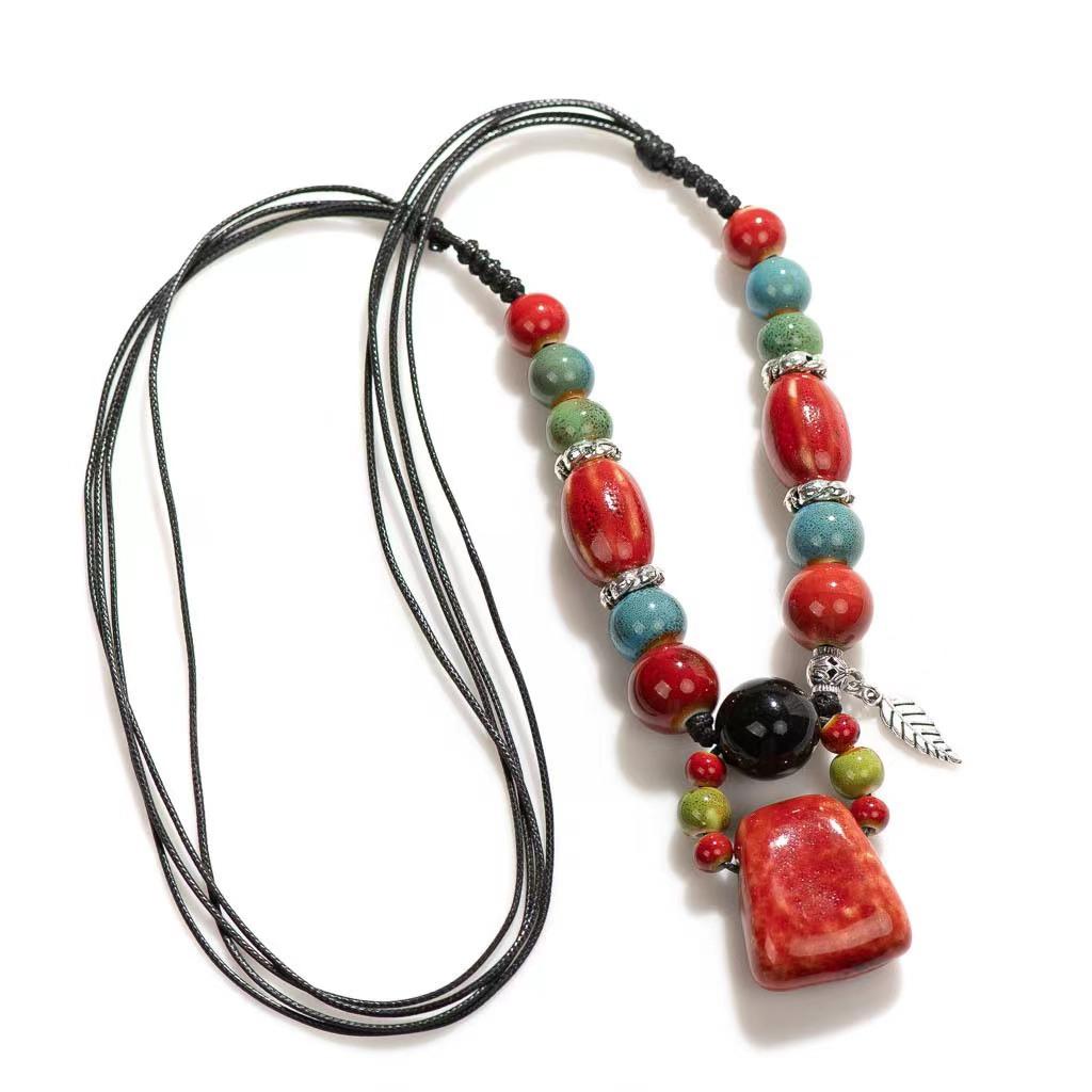 Schöne Retro-Halskette mit Anhänger aus handgefertigten Keramikperlen im Ethno-Stil