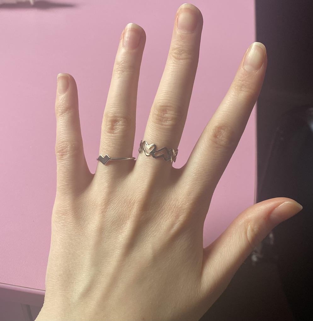 Hallo an alle ! Zwei Ringe mit Herzen ! Sowohl von der Größe als auch von der Qualität her eine Option ausschließlich für Teenager. Meine Tochter ist zufrieden, ich empfehle den Kauf ! ❗❗PS – Ich füge hinzu: Im wahrsten Sinne des Wortes eine Woche später oxidierten die Ringe und wurden unbrauchbar. Man könnte sagen, Einwegartikel! 👎👎👎