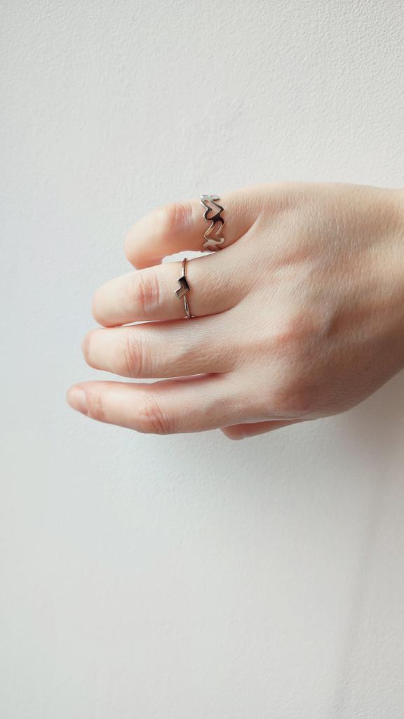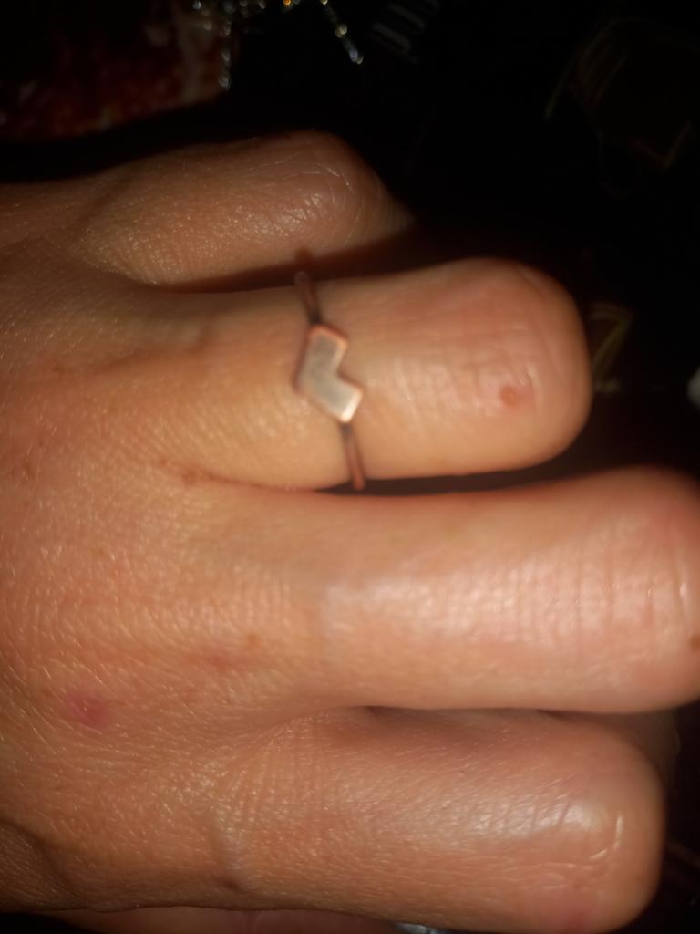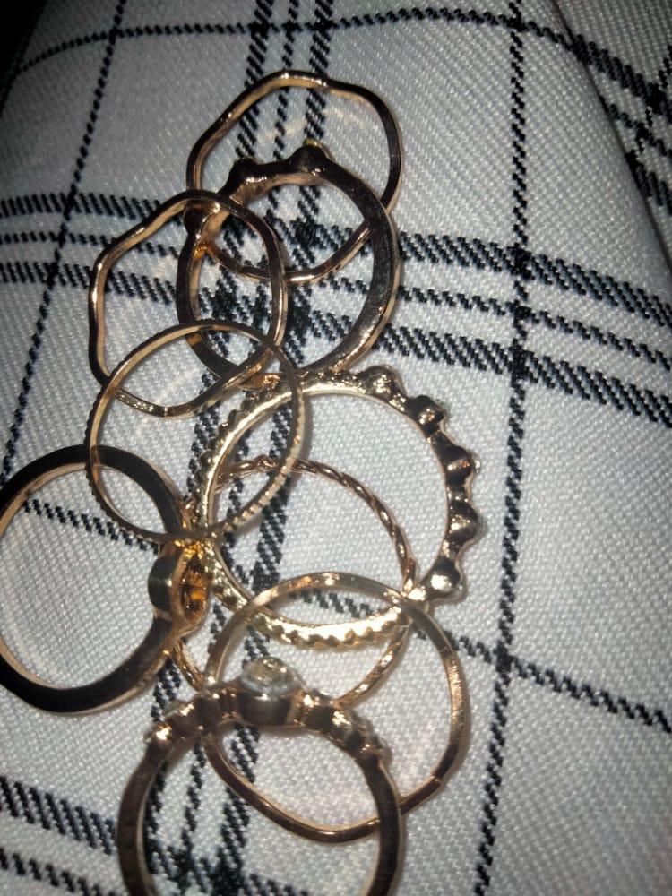 Sehr hübsche kleine Ringe. Die zweite wurde von meiner Tochter aufgenommen. Nach zwei Tagen Tragen veränderte der dünne Ring seine Farbe.