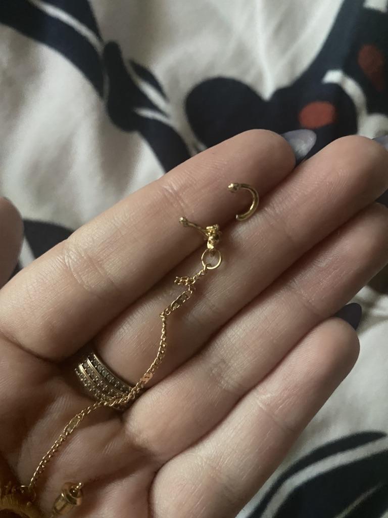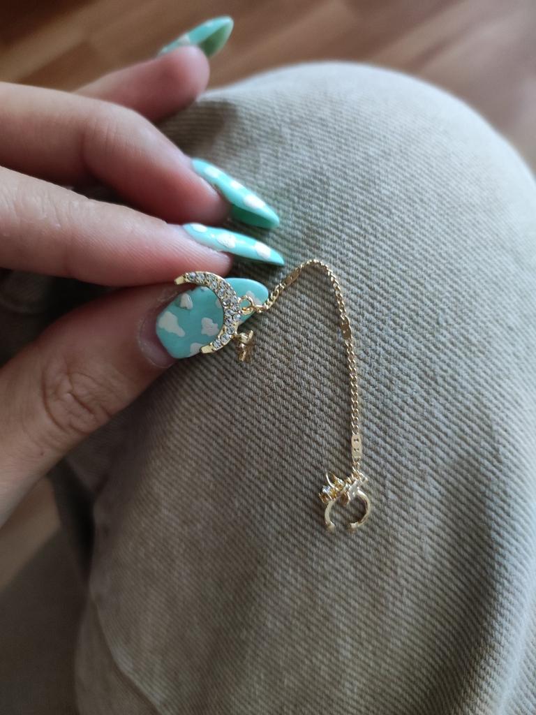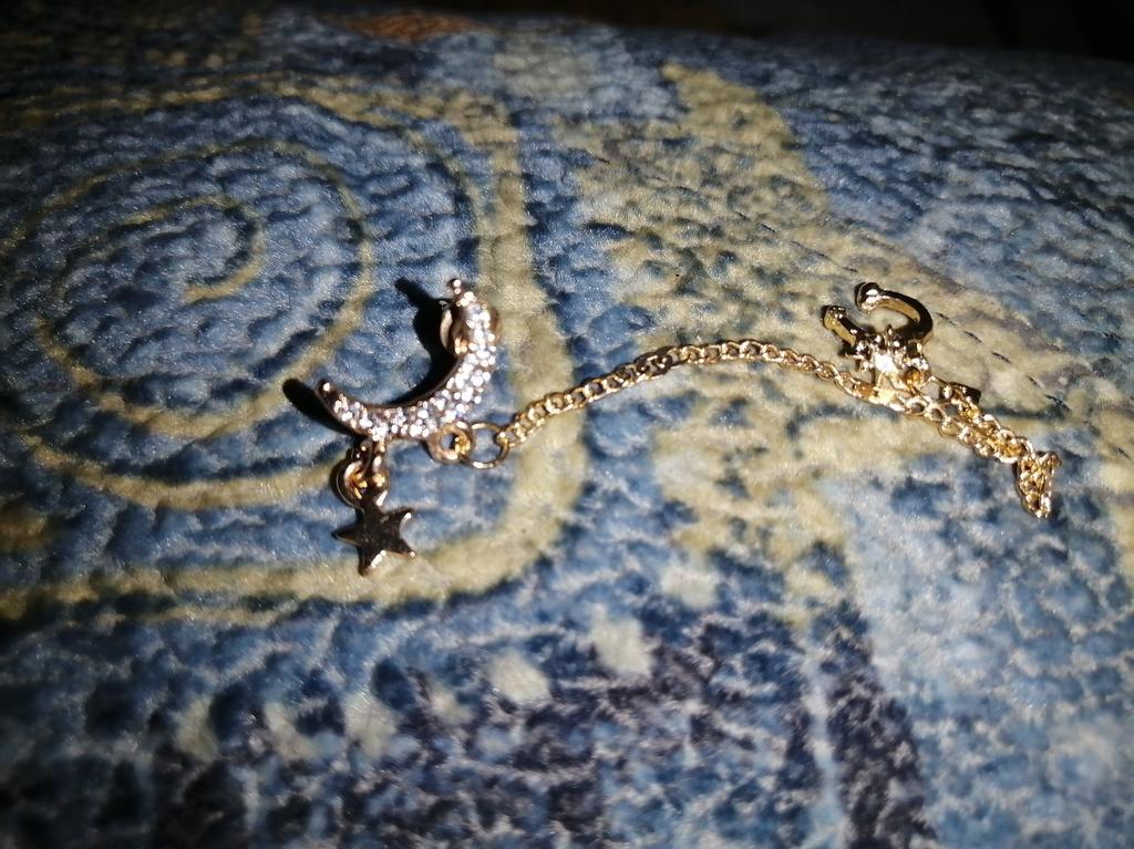 Die Ohrringe sehen sehr billig aus. Die Kette in der Nähe des Mondes ist nicht richtig befestigt, sie musste erneuert werden.