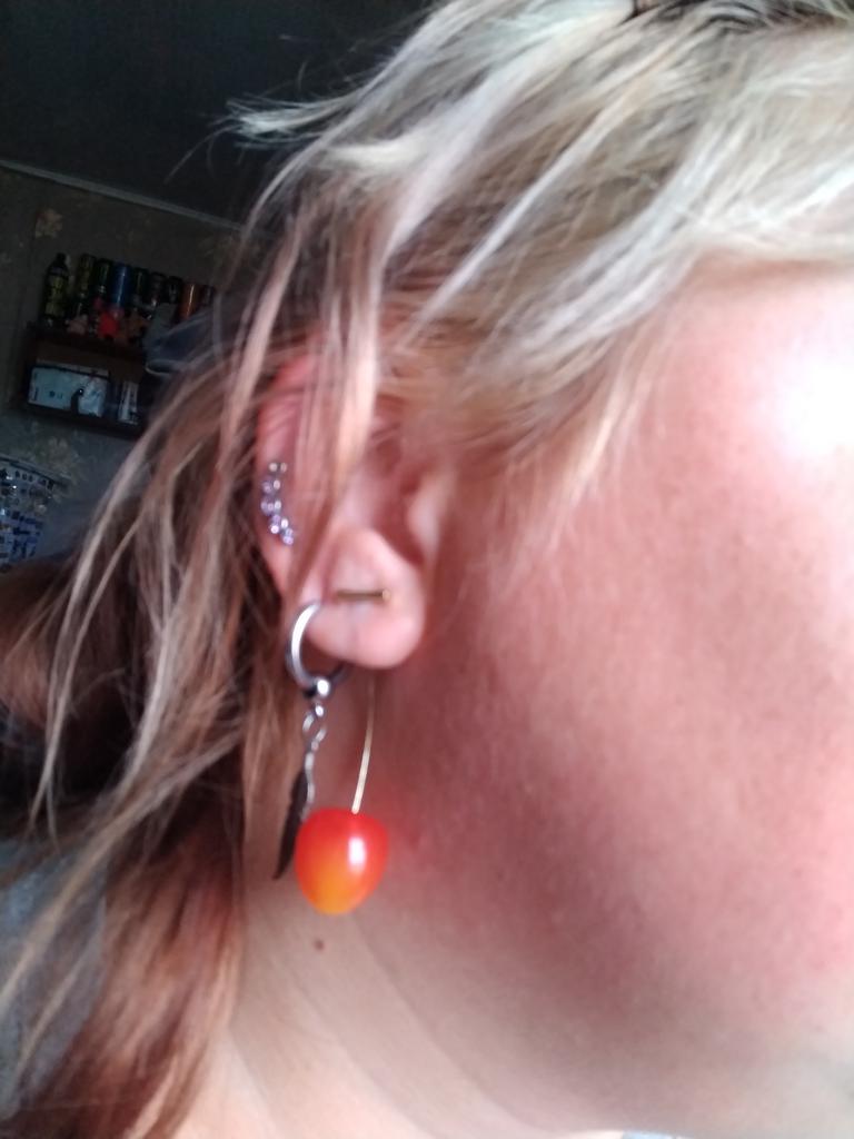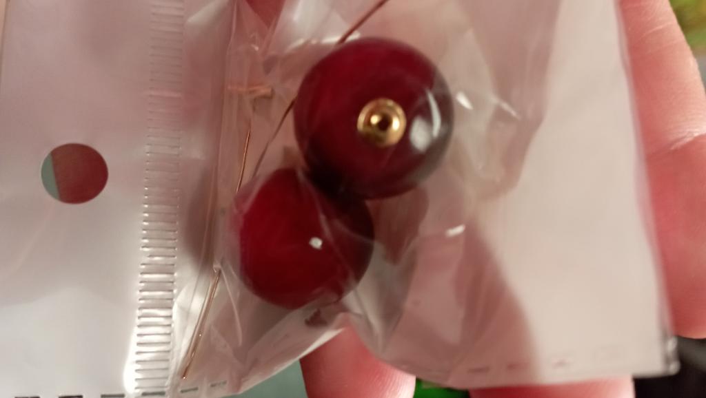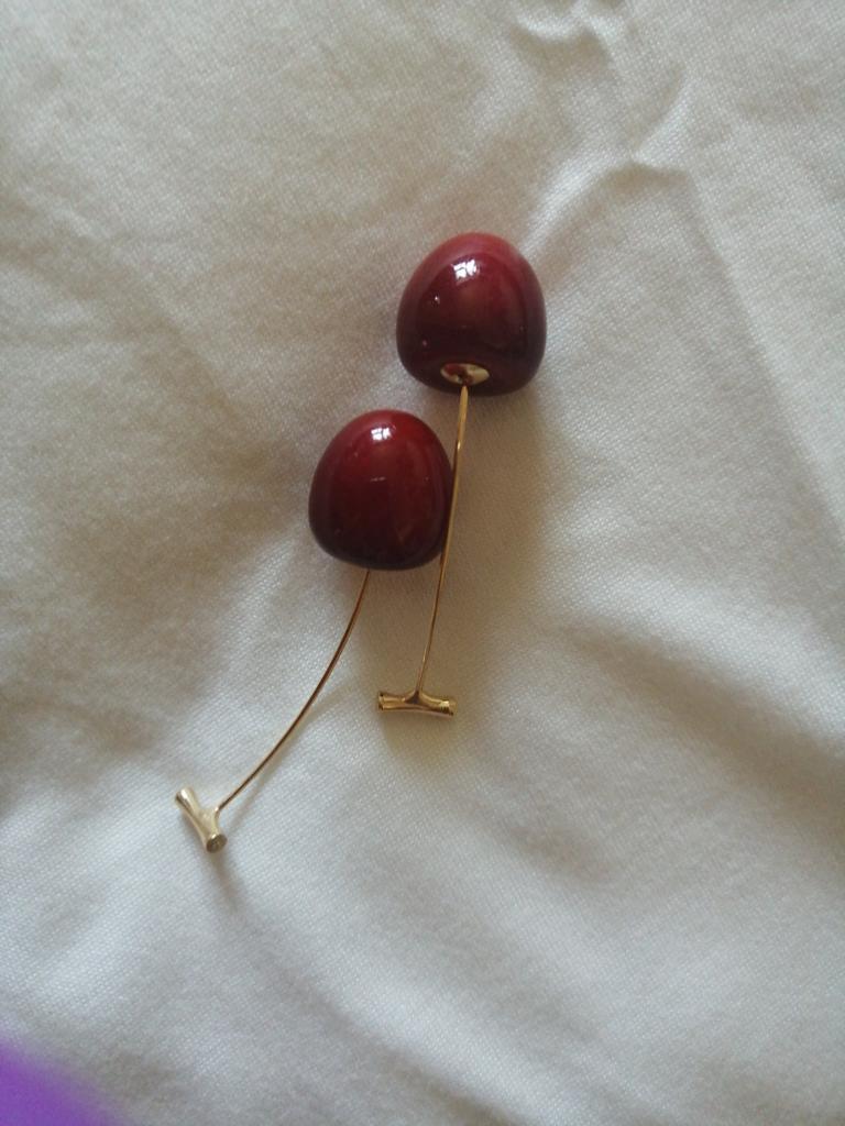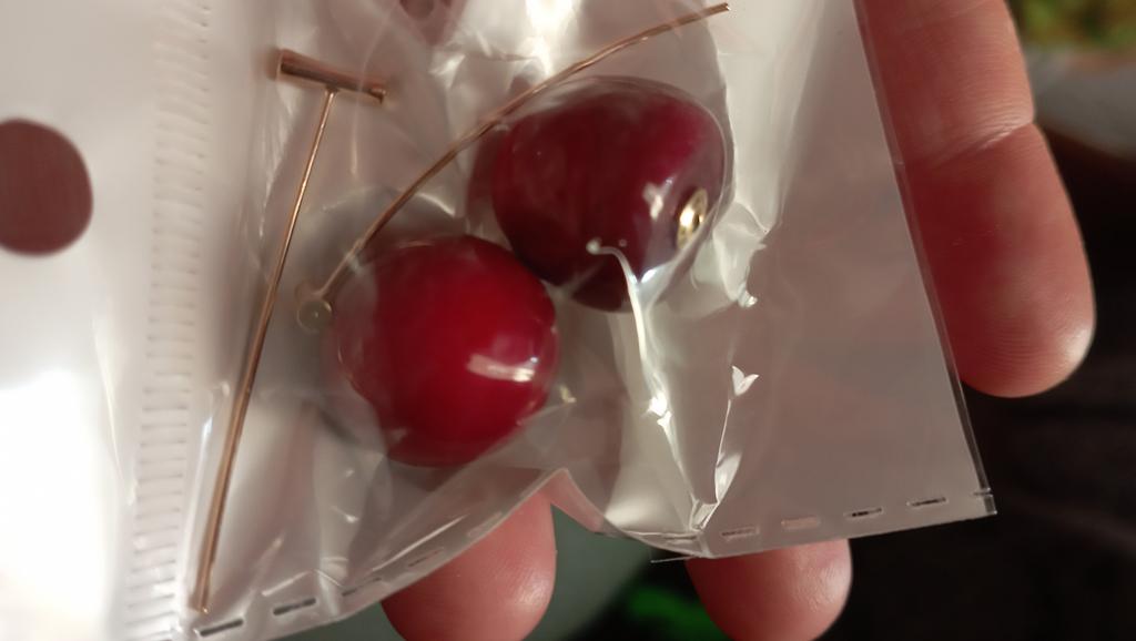 Erster Eindruck: wunderschöne realistische Ohrringe, die von kleinen Magneten gehalten werden. Aber diese Magnete sind unzuverlässig. Ich habe es genau einmal getragen, bin nach Hause gekommen und habe gesehen, dass die Kirschen weg waren