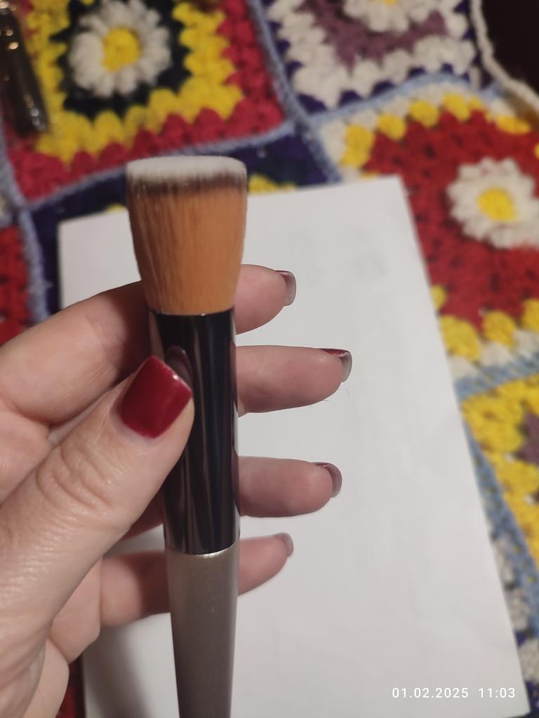 Das Bild zeigt, dass der Pinsel rund ist, aber er kam flach an 😄, etwas zerdrückt!!! Es ist schade!!!!
