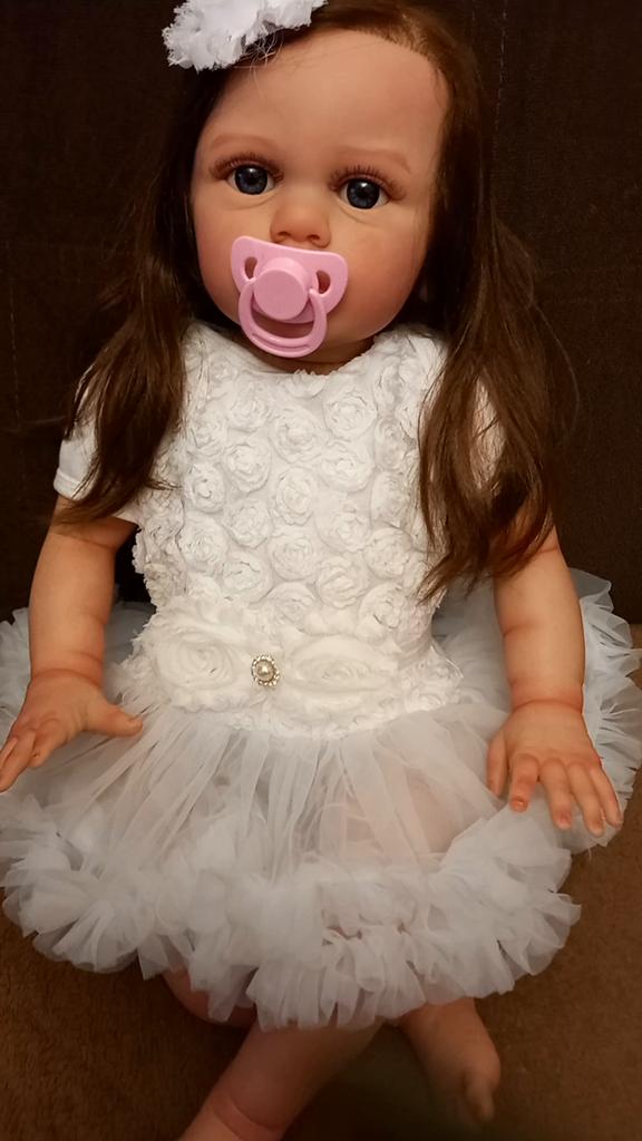 BZDOLL 60 CM 3D-Paint Haut Weiche Silikon Reborn Baby Puppe Für Mädchen Stoff Körper Realistische Lange Haare Prinzessin Kleinkind lebendig Dress Up Bebe