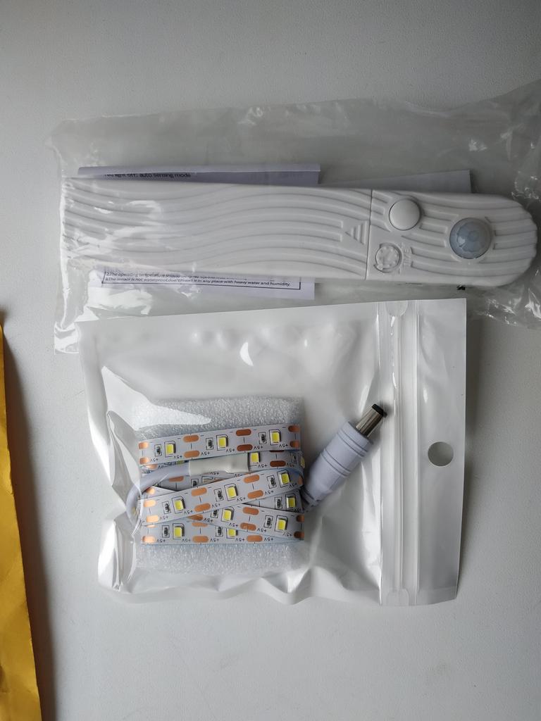 Ein wunderbares Gerät. Der Bewegungssensor wird durch Bewegung ausgelöst. Die Laufzeit der Beleuchtung mit einem LED-Streifen ist richtig geregelt. Das Set enthält keine Leistungselemente. Ich habe in der Ukraine vier 1,2-V-Fingerbatterien gekauft, eingelegt und alles funktioniert.