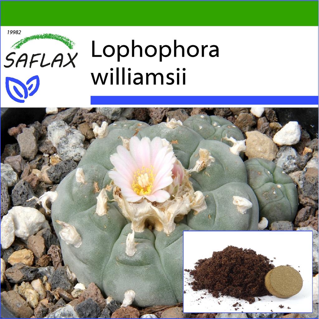 Der langsam wachsende Peyote ist ein kleiner, weichfleischiger, halbkugelförmiger Kaktus ohne Stacheln, der nicht größer als 8 bis 15 cm wird. Vom Frühling bis zum Sommer produziert sie kleine, pinkfarbene Blüten. Berühmt oder eher berüchtigt ist es für seinen hohen Gehalt an über 50 Alkaloiden, von denen die psychedelische Substanz Meskalin am bekanntesten ist und halluzinogene Rausch- und Illusionszustände hervorrufen kann. Bevor die Spanier Mexiko eroberten, hatte der Peyote eine starke kulturelle Bedeutung für das mexikanische Volk. Ausgerechnet während der Inquisition und Missionsarbeit wurde er immer mehr durch ein anderes Rauschmittel, den Agavenschnaps Tequila, ersetzt.
