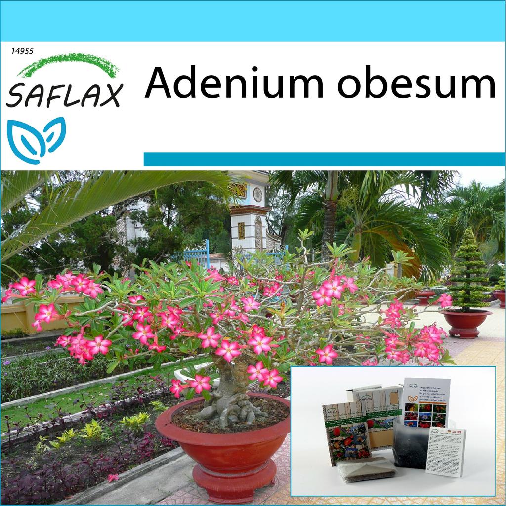 Die exotische Wüstenrose bildet einen bizarr aussehenden, wasserspeichernden Sukkulentenstamm (Kaudex), die es durch Anpassung an seinen trockenen natürlichen Lebensraum entwickelt hat. Er erfreut jeden Bonsai-Liebhaber mit einer reichen Blüte, die die ganze Pflanze mit bis zu 5 cm großen, rosa-rot gefärbten Blüten bedeckt.