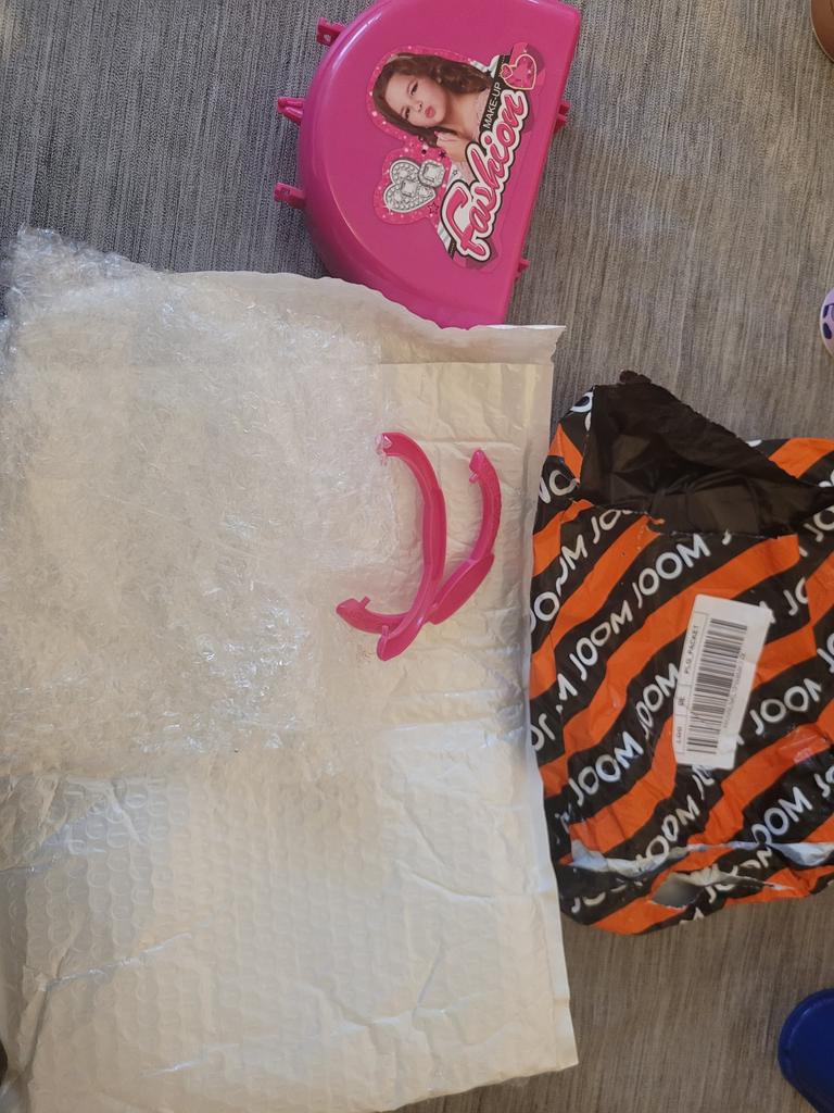 Verpackt, in dem Wissen, dass die Teile nicht intakt sind, es kein Schlossteil an der Tasche gibt, sie gebrochen sind, Risse aufweisen und sogar mit Klebeband verklebt sind.