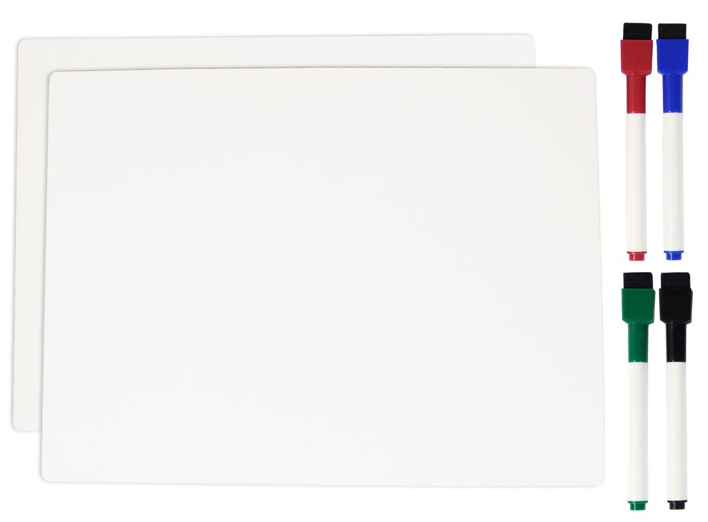 Inkdotpot Doppelseitiges, schlichtes, weißes, trocken abwischbares Zeichenbrett für Kinder und Studenten, 9 x 12 Zoll mit 4 Markern für die Heimschule (1 Stück