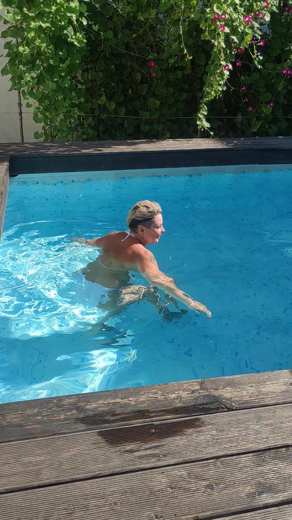 Der Bikini ist qualitativ sehr gut. Die Hose ist mir zu groß, das Oberteil passt gut. Ich mag es, wenn man mehr Bräune bekommt. Für die Größe gebe ich 4 Punkte