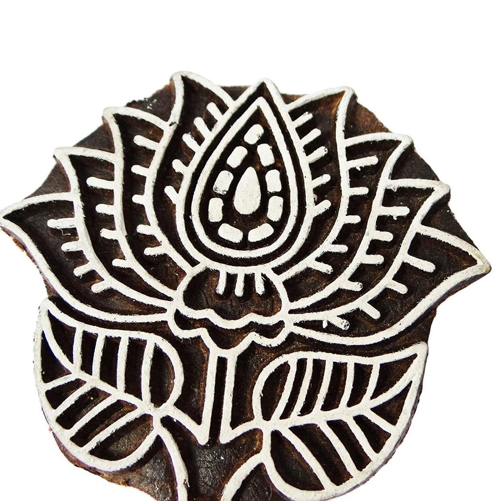 Lotus-Design-Druckblock auf Bekleidungsstoff, Holzhandwerk, ethnische Textilien