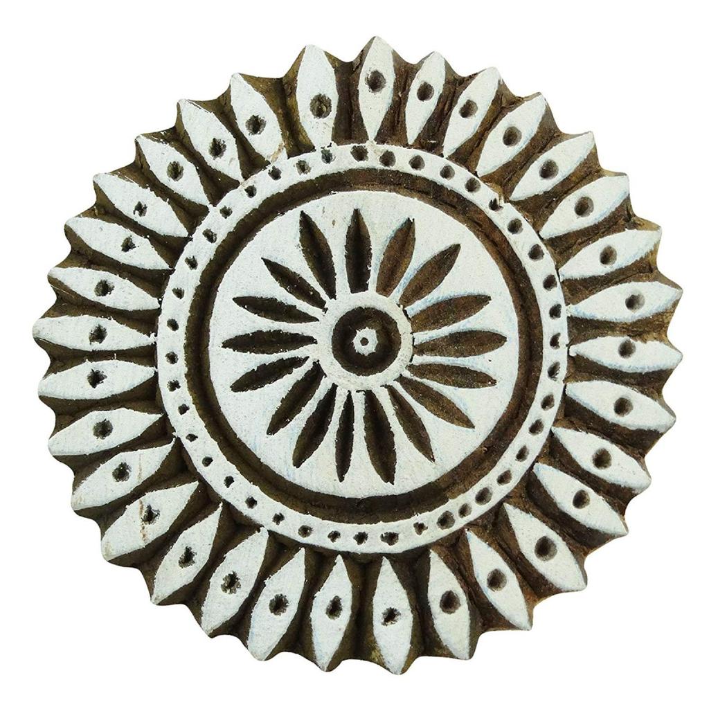 Runder Blumendruck, handgefertigter Holzdruckblock, Holzhandwerk, indische Kunst