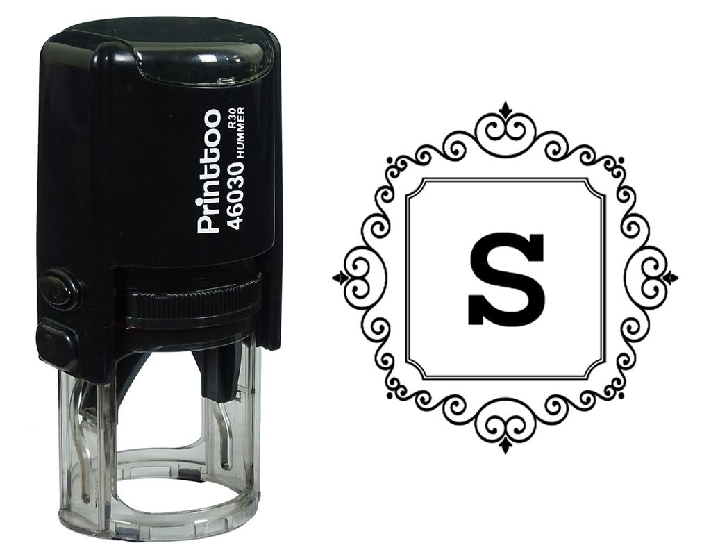 Printtoo Square Swirl Border Alphabet S Monogram Initial Self Inking Rubber Stamp Office