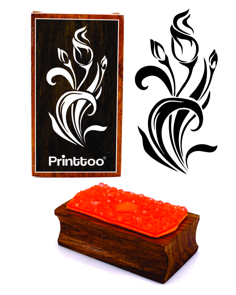 Printtoo Lily Flower Design Rectangular Wooden Rubber Stamp Block