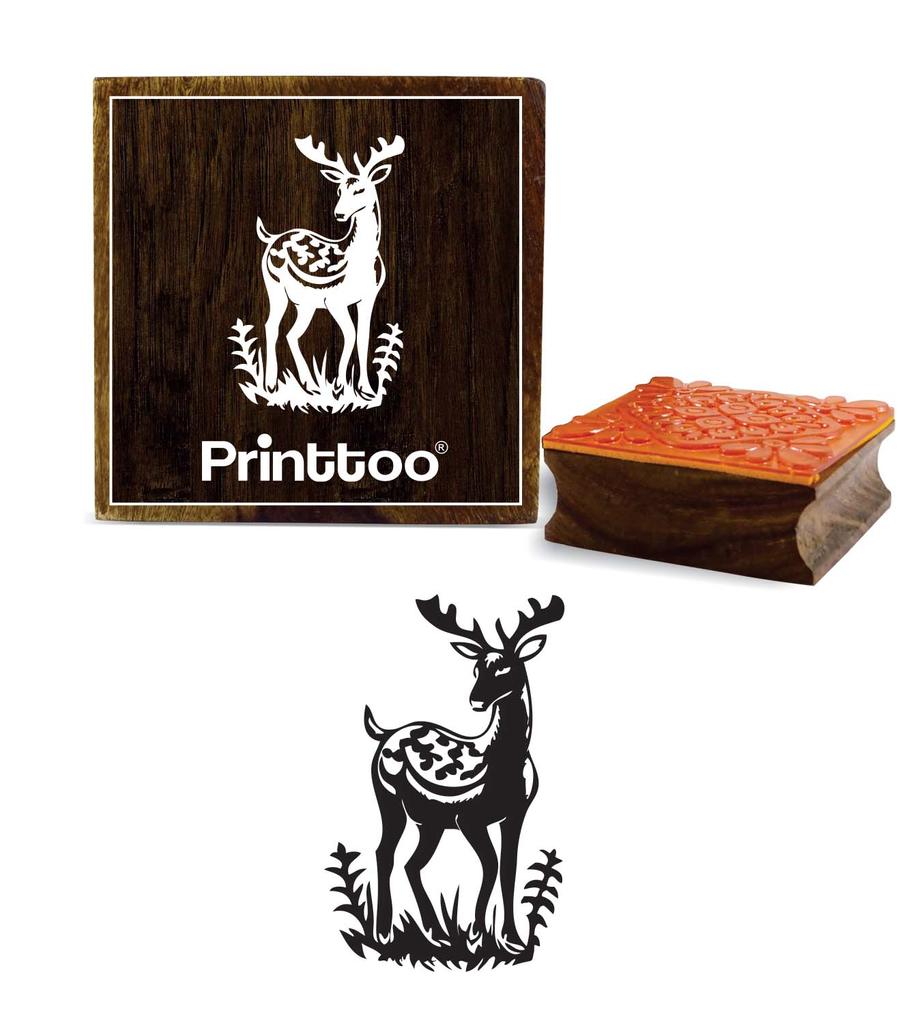 Printtoo Brown Wooden Square Deer Pattern Stamp Christmas Secret Santa Gift Stamps-2 x 2