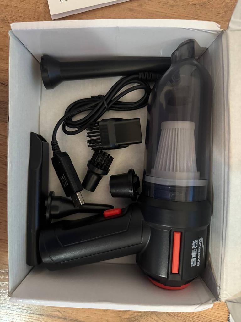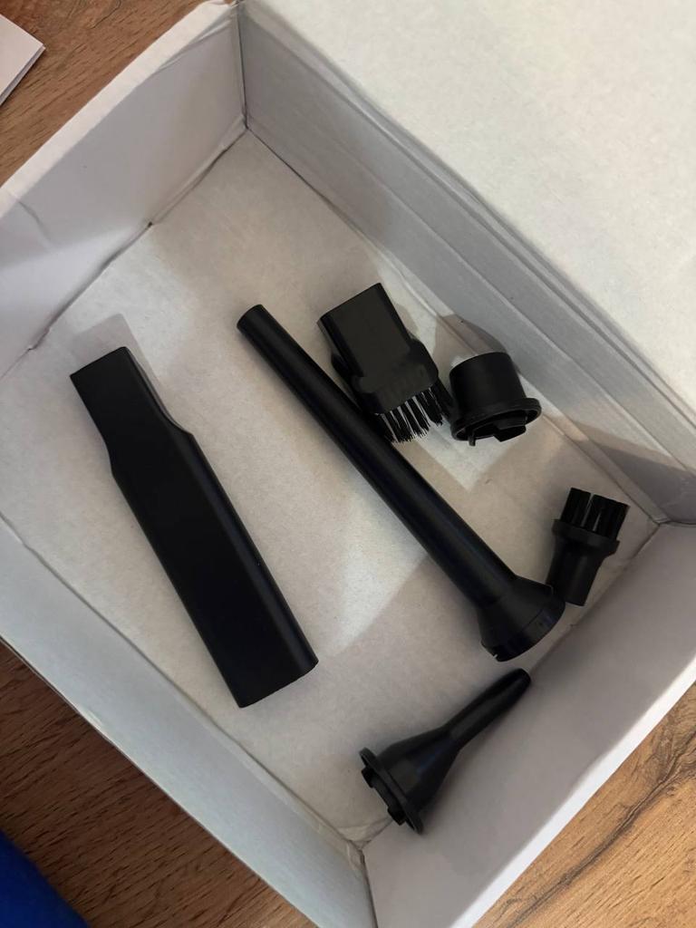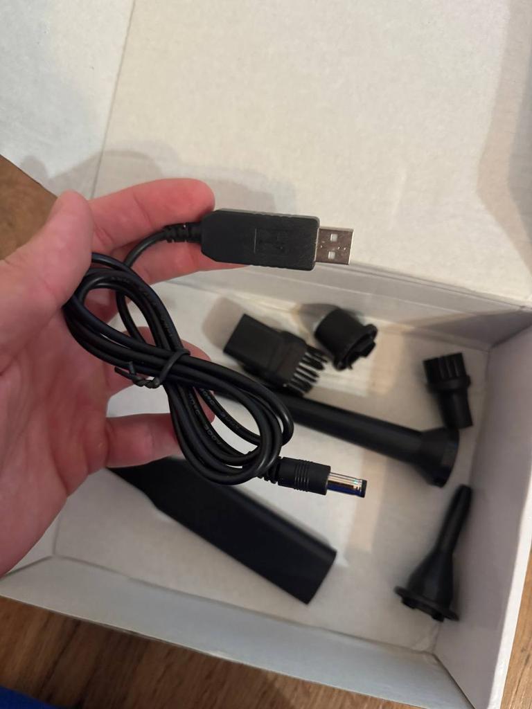 Eine so gute Leistung habe ich nicht erwartet. Sehr gut sowohl als Staubsauger als auch als Gebläse. Es gibt mehrere Bürsten und Aufsätze, um einen ziemlich starken Luftstrom zu erzeugen. Mit seiner Hilfe können Sie Kühler und Lüfter ordnungsgemäß reinigen, ohne sie zu zerlegen oder zu entfernen. Wiederaufladbarer Staubsauger. Laden über USB3. In der Anleitung steht, dass 20 Minuten ausreichen sollten. Auf jeden Fall genug, um Ihren Computer zu reinigen.