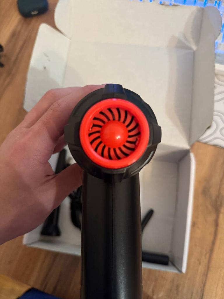 Das Gebläse ist gut, aber es könnte besser sein. Preis=Qualität. Die Aufsätze sind gut, sie fliegen bei der Arbeit nicht ab. Insgesamt bequem.