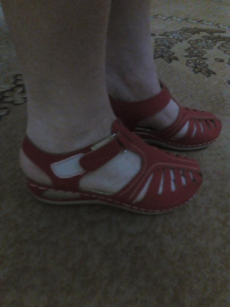 Hallo. Ich habe die Sandalen erhalten. Sie scheinen zu passen, bisher sind die neuen gut genäht, die Farbe ist etwas grell, ich bedaure, dass ich sie nicht gegen eine andere austauschen konnte. Der Klettverschluss an der Seite ist auch eingenäht an der falschen Stelle, müssen Sie herausfinden, wie Sie den Klettverschluss neu anordnen.