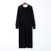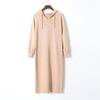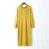 Langes Pulloverkleid mit Kapuze für Damen, solide, volle Ärmel, gerade, Schwarz, Aprikose, Khaki, Kaffeegelb
