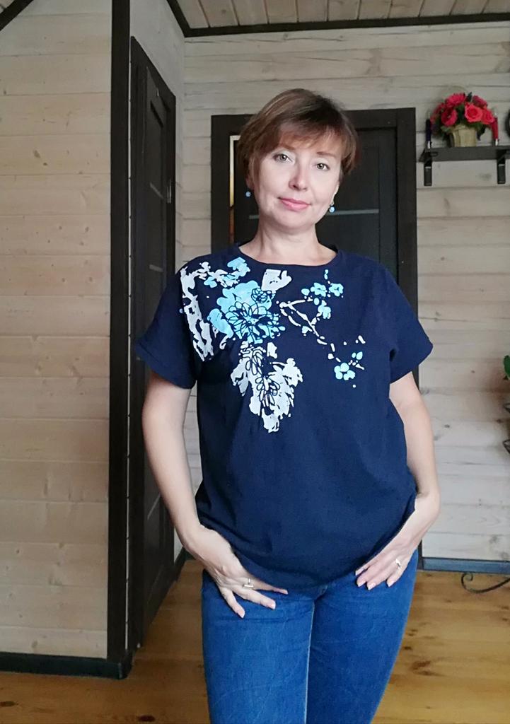 Das T-Shirt ist wunderschön, hochwertig, es passt zu meiner Größe 50. Das Paket kam innerhalb von 10 Tagen an.