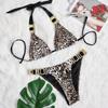 S - XL Bling Diamond Leopard Bikini Damen Badeanzug Damen Bademode Zweiteiliges Bikini-Set Neckholder Badende Badeanzug Schwimmen
