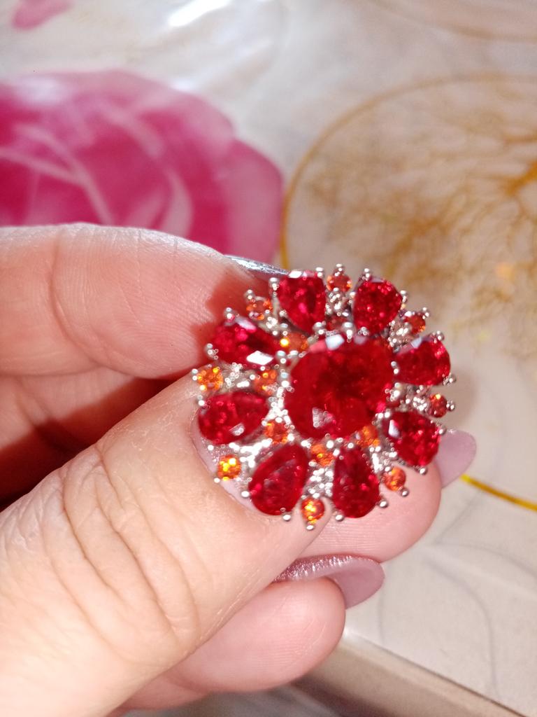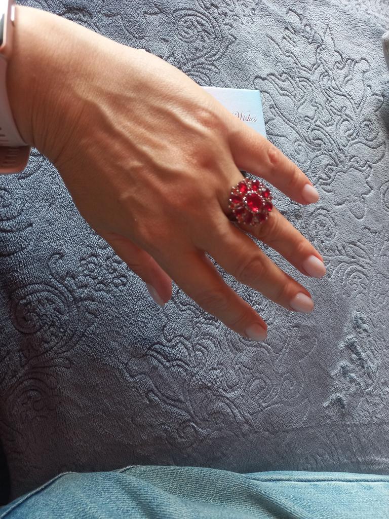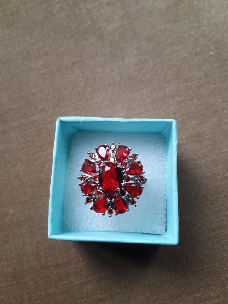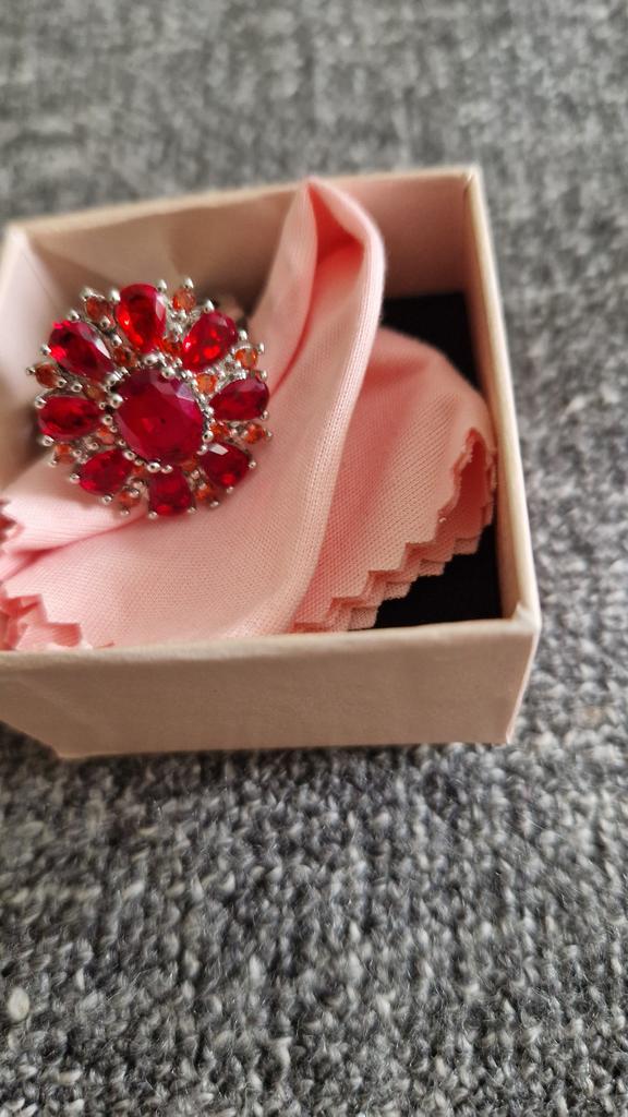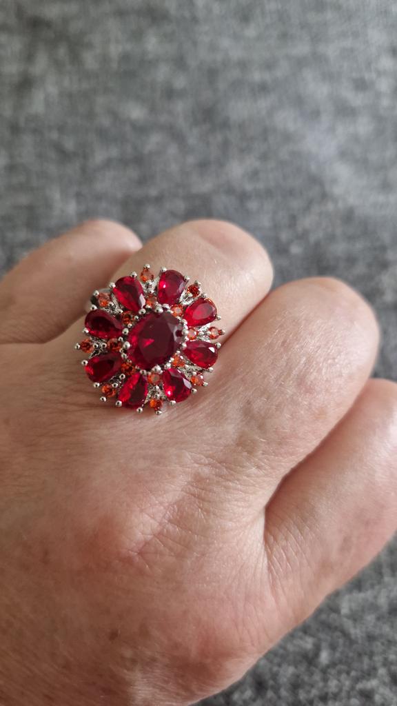 Seien Sie vorsichtig, ich habe einen Ring mit roten und orangefarbenen Steinen erhalten. Ich bin enttäuscht, er entspricht nicht dem Foto, auf dem alles rot ist