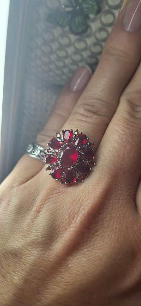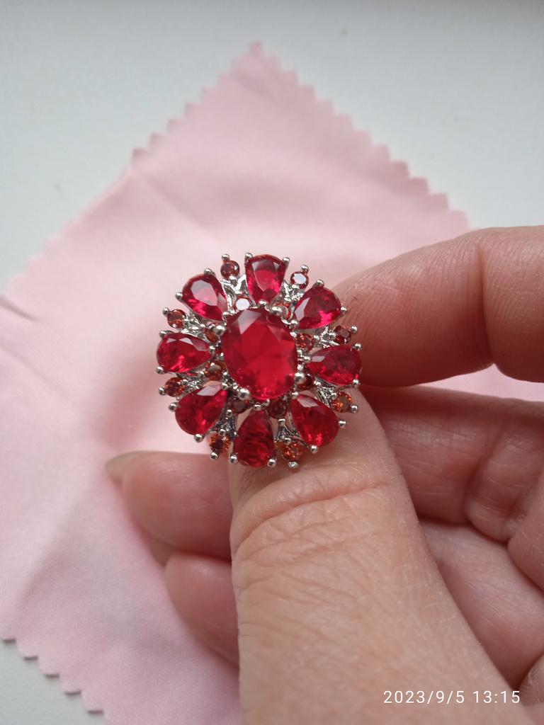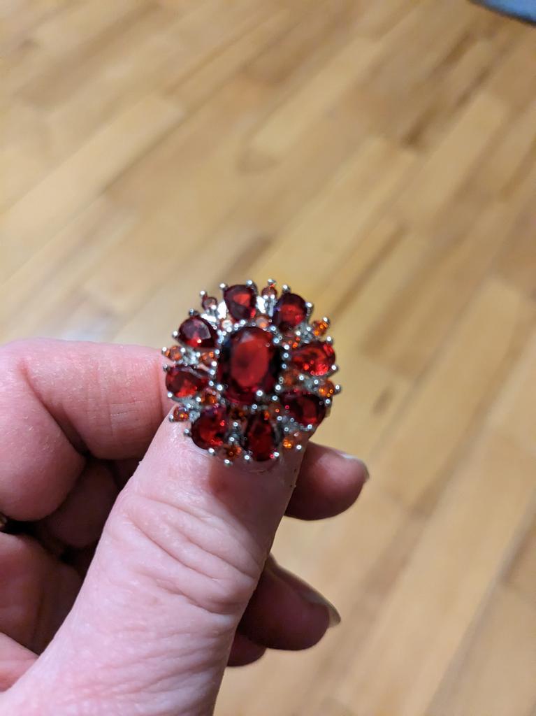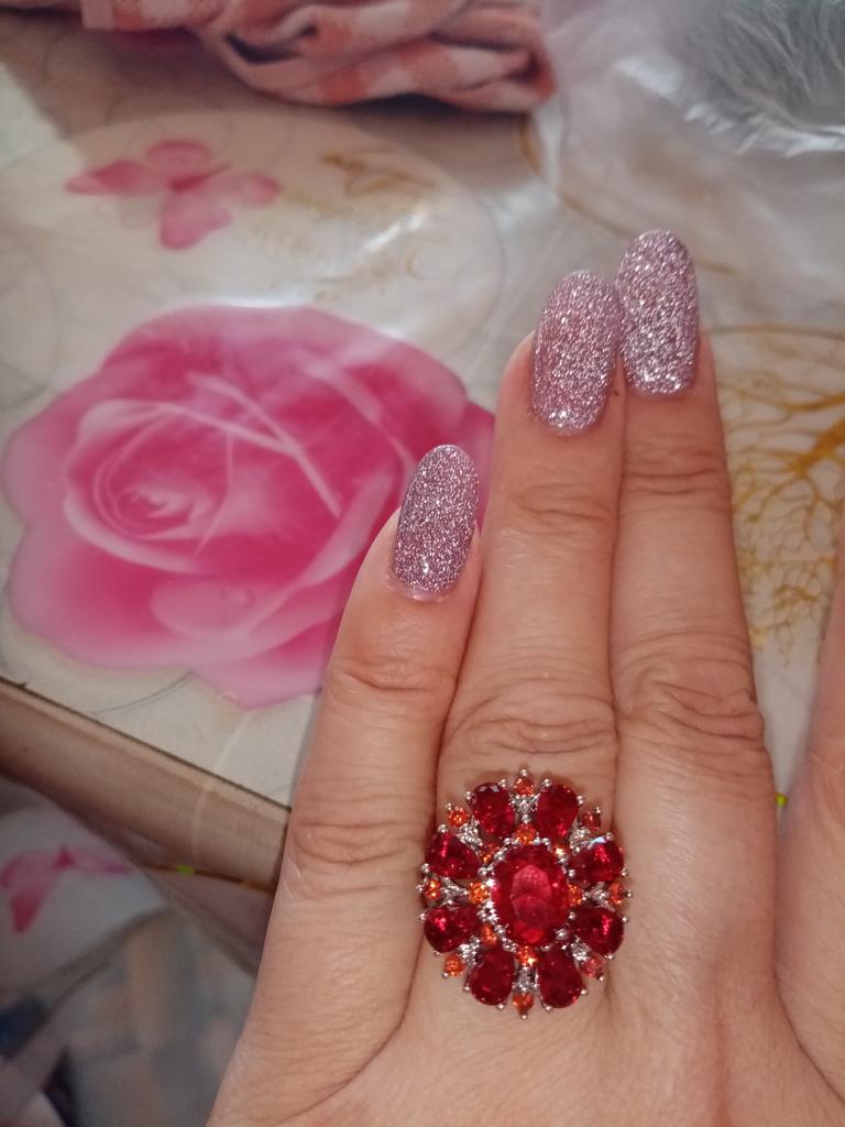 Seien Sie vorsichtig, ich habe einen Ring mit roten und orangefarbenen Steinen erhalten. Ich bin enttäuscht, er entspricht nicht dem Foto, auf dem alles rot ist