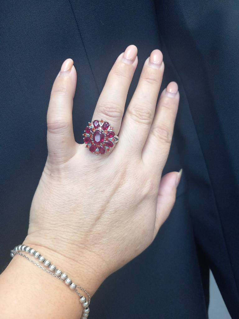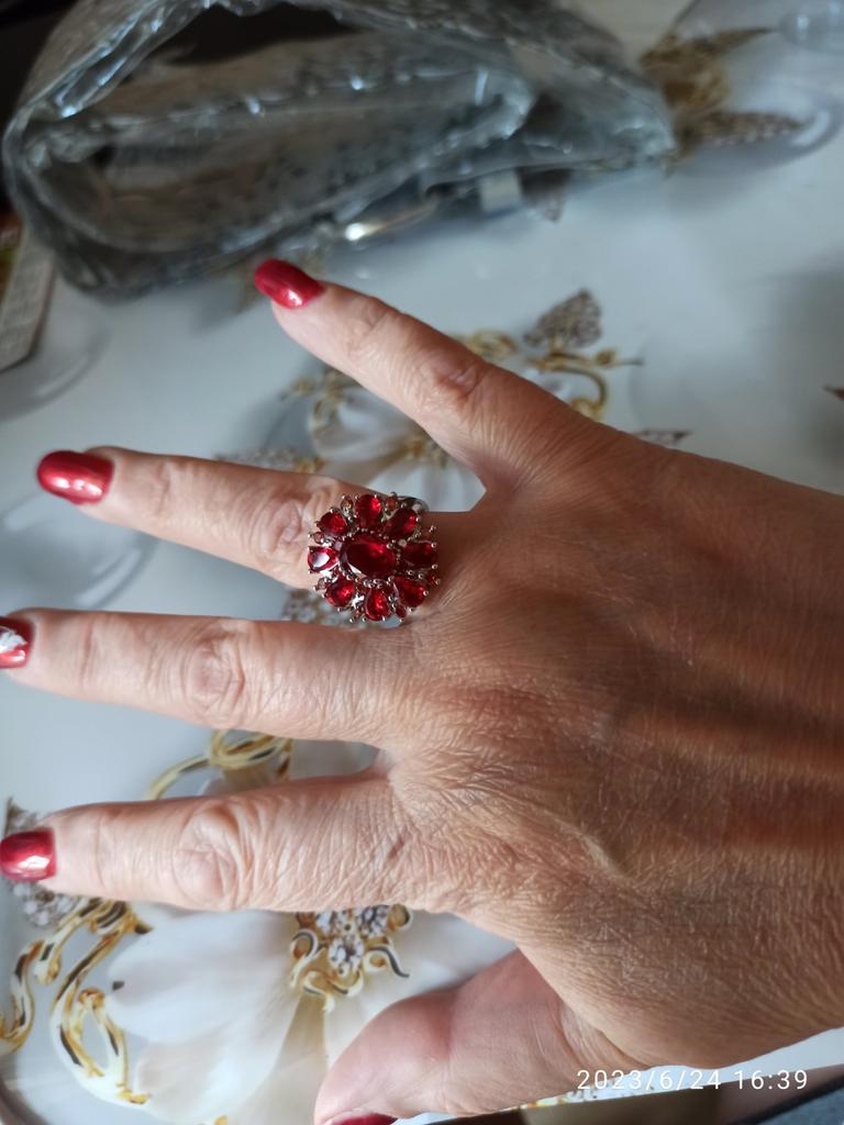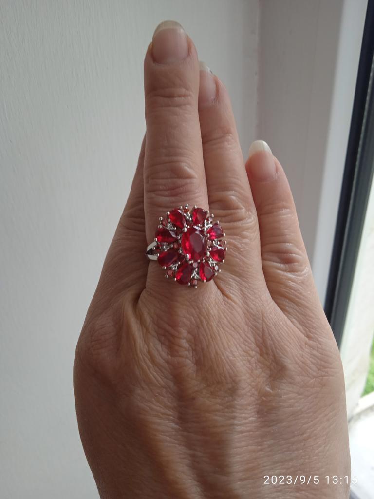 Silberner, verstellbarer Ring mit roten Steinen, gut, sehr schön. Sieht aus wie ein König. Die Qualität ist beeindruckend. Ich empfehle zu kaufen.
