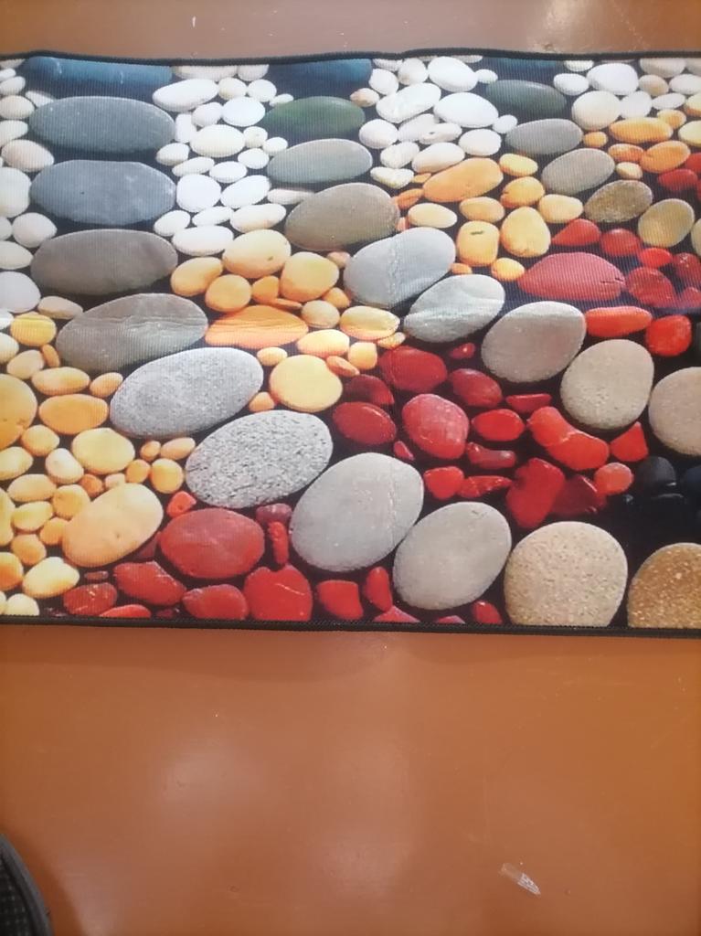 Dieser kleine Kieselstein-Küchenteppich ist sehr farbenfroh (die Farben sind noch heller als auf dem Foto) und bequem. Ich ziehe einen Stern ab, weil in der „vollständigen Beschreibung“ keine Informationen zum Waschen – oder Nichtwaschen – enthalten sind!