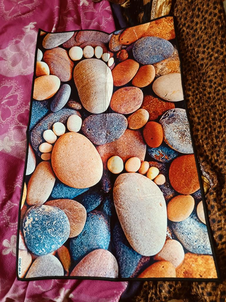 Die Größe der Matte ist klein, sie saugt gut auf, ist leuchtend, aber man hätte sie eine Nummer größer bestellen sollen.