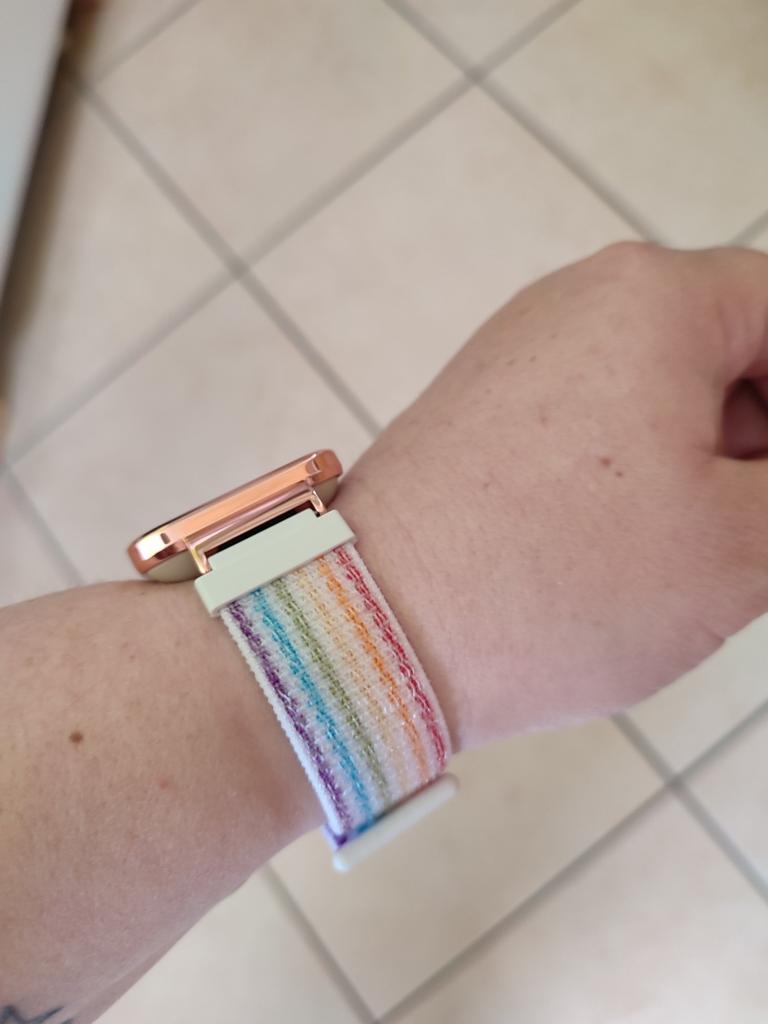 Beide Bänder sind leicht anzubringen. Perfekte Passform und hochwertiges Design. Das mintfarbene Klettband sitzt fest und lässt sich prima tragen. Auch für schmale Handgelenke. Das Schwarze ist aus weichem Silikon und trägt sich gut.
