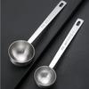 3. Größenpaket - Die Edelstahllöffel haben ein Fassungsvermögen von 15 ml und 30 ml und sind 5,73 Zoll und 6,4 Zoll lang. Der lange Griff ist mit der Messgröße graviert, um eine genaue Messung und eine einfache Ablesung zu gewährleisten.