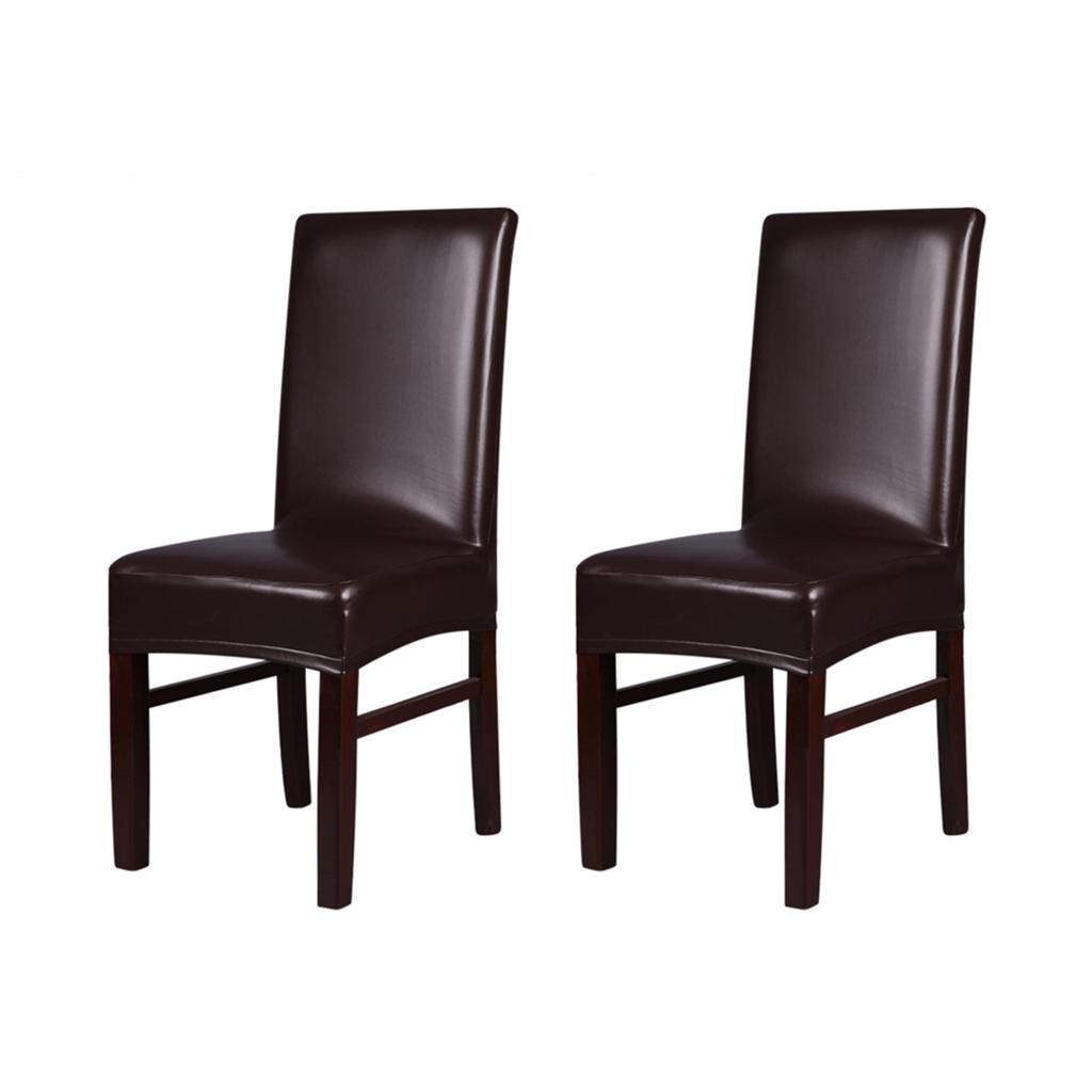2 Stück Einteilige PU-Leder Stretchbare Esszimmerstuhl Rückenlehnen-Sitzbezüge Wasserdicht Ölfest Staubdicht
