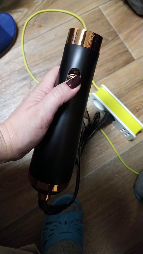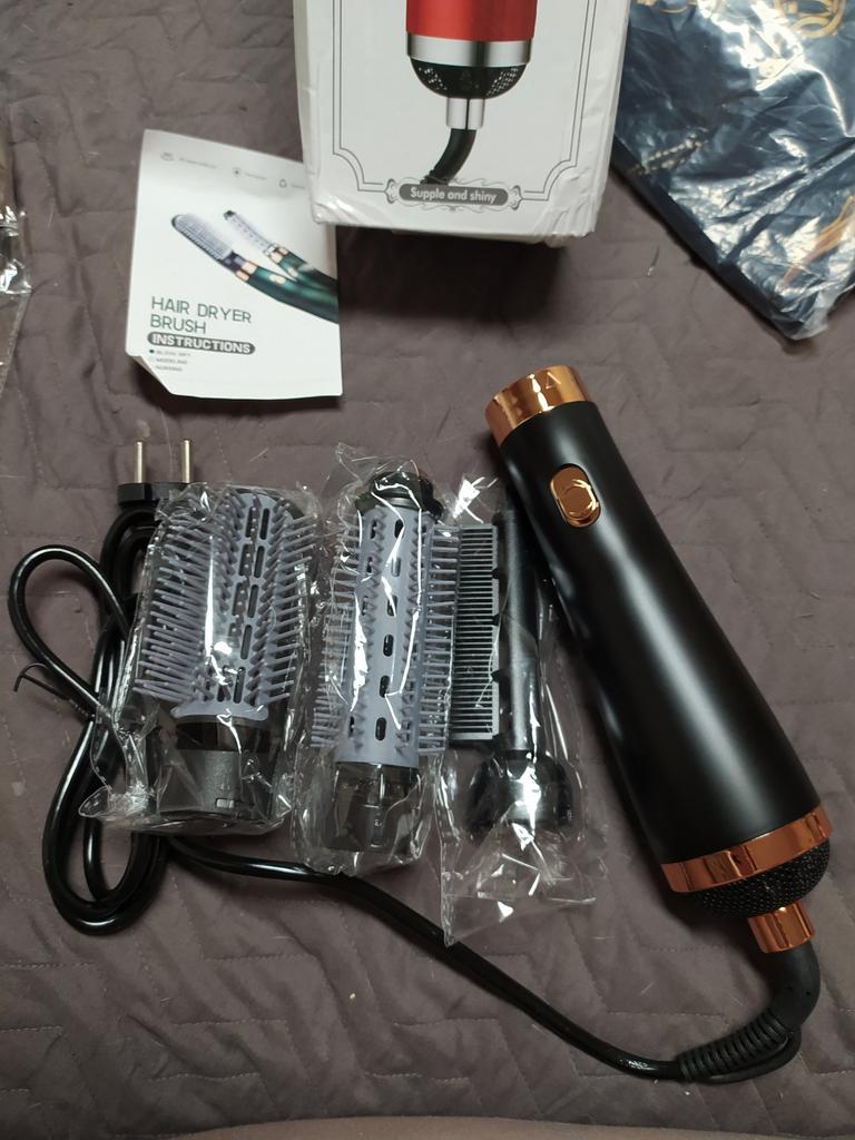 Es funktioniert sehr gut. Es gibt 3 Optionen: niedrige Geschwindigkeit heiß, mittlere Geschwindigkeit kalt, hohe Geschwindigkeit sehr heiß. Der einzige Nachteil ist, dass es kein kleineres Rundbürstenzubehör gibt: nur eine große Rundbürste, eine Comp- und eine Flachbürste.