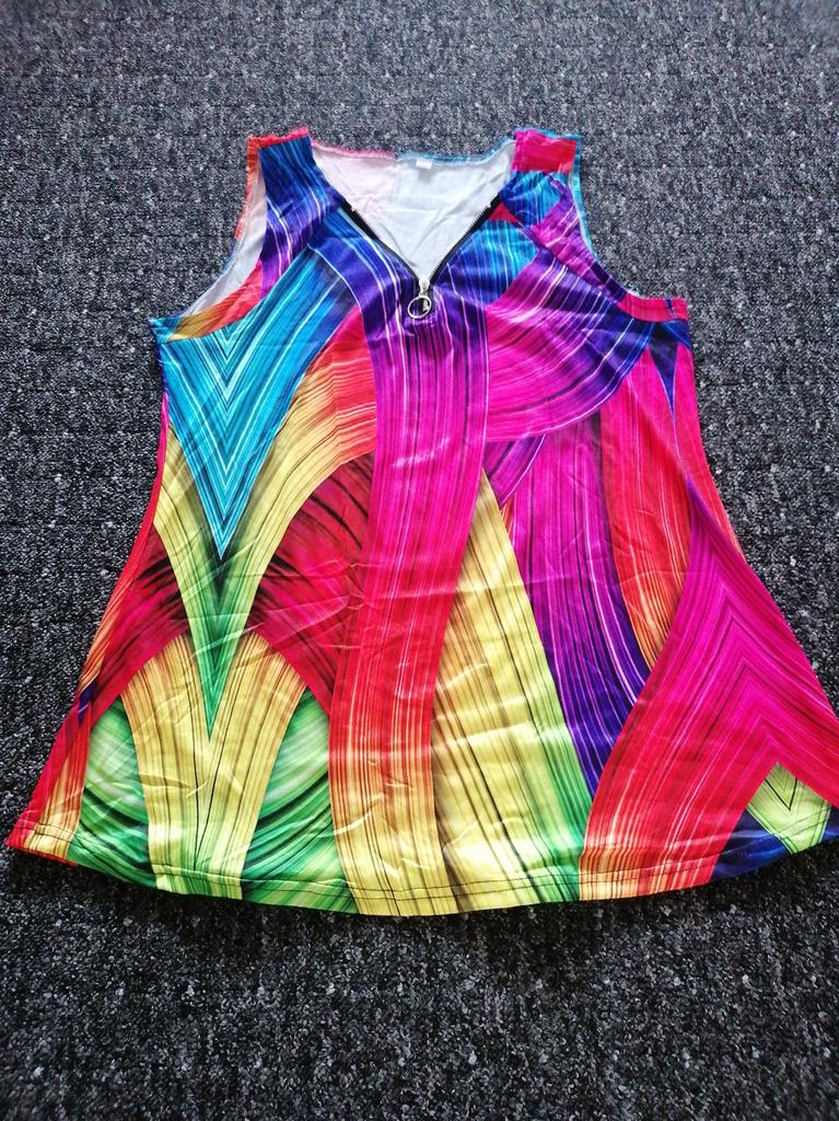 Frauen Top Sommer Neue Mode Mehrfarbige Blume Gedruckt Casual Plus Größe Ärmellose Zipper V-ausschnitt Top Tank Top