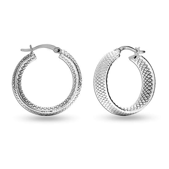 LeCalla S925 Sterling Silber Schmuck rhodinierte strukturierte Creolen für Teenager-Frauen