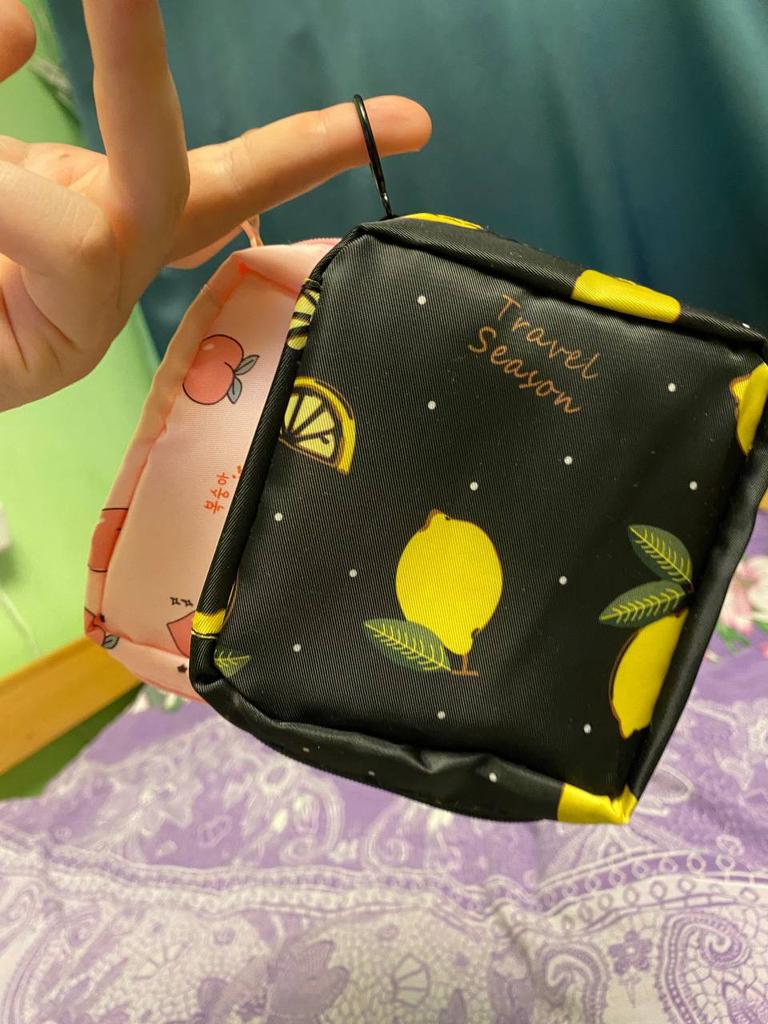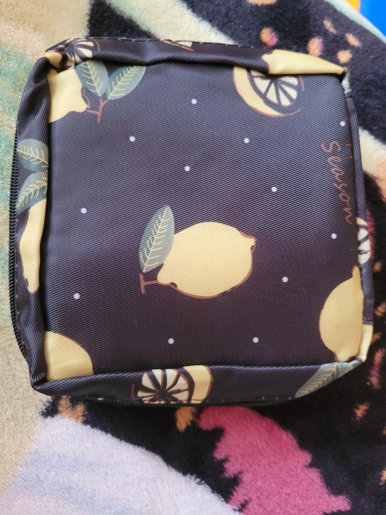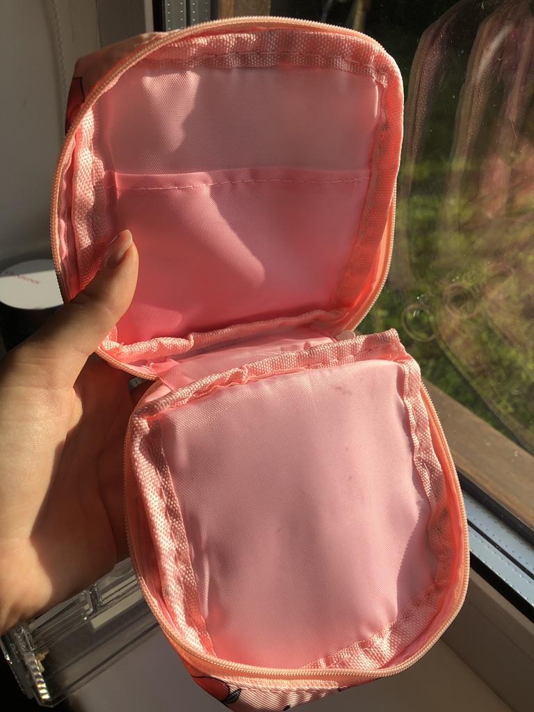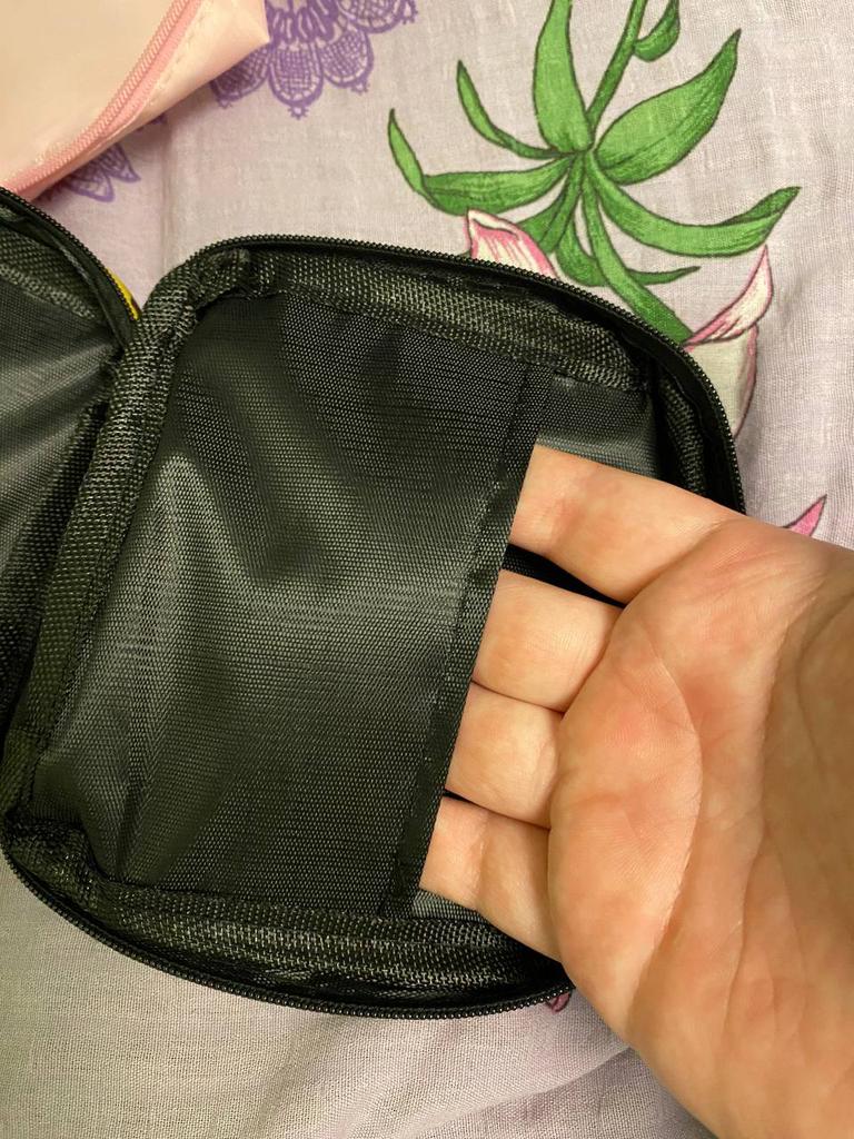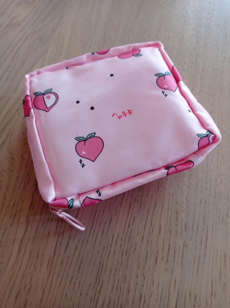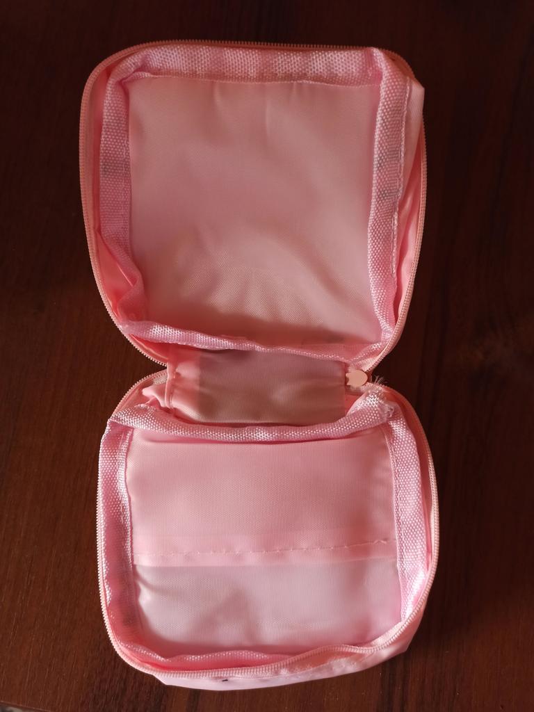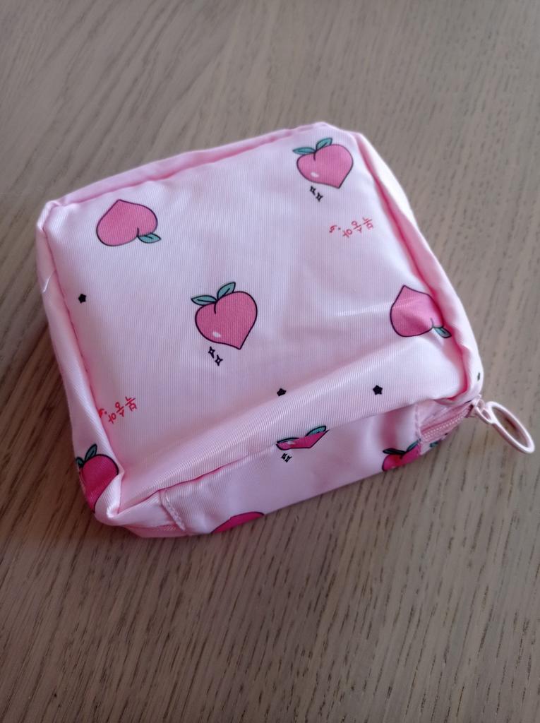 Ziemlich geräumige kleine Tasche) Mir gefällt es und die Binden ragen nicht einfach so in der Tasche herum. Hier passten welche in verschiedenen Größen hinein und alles ist hygienisch. Auf die Toilette zu gehen ist kein Problem mehr wie früher)
